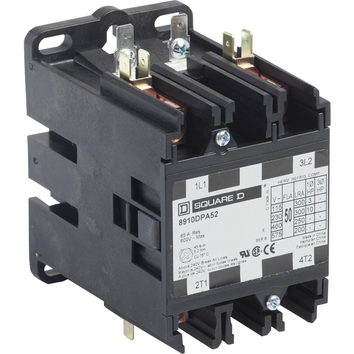 Square D 8910DP Non-reversing Definite Purpose Contactors 50 A 2 Pole 208/240 VAC