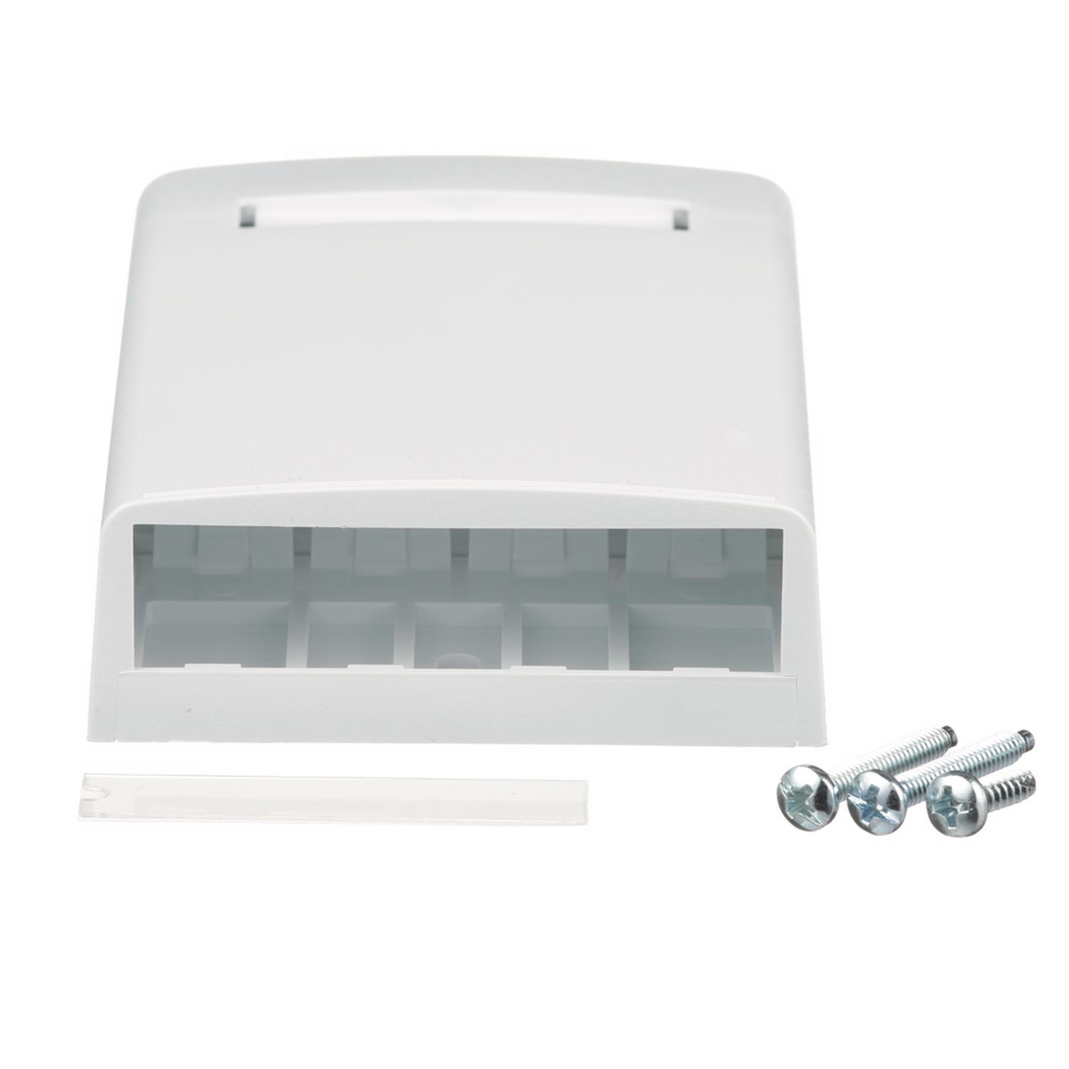 - Supplied with mounting screws, adhesive backing, cable ties and label holder/screw cover