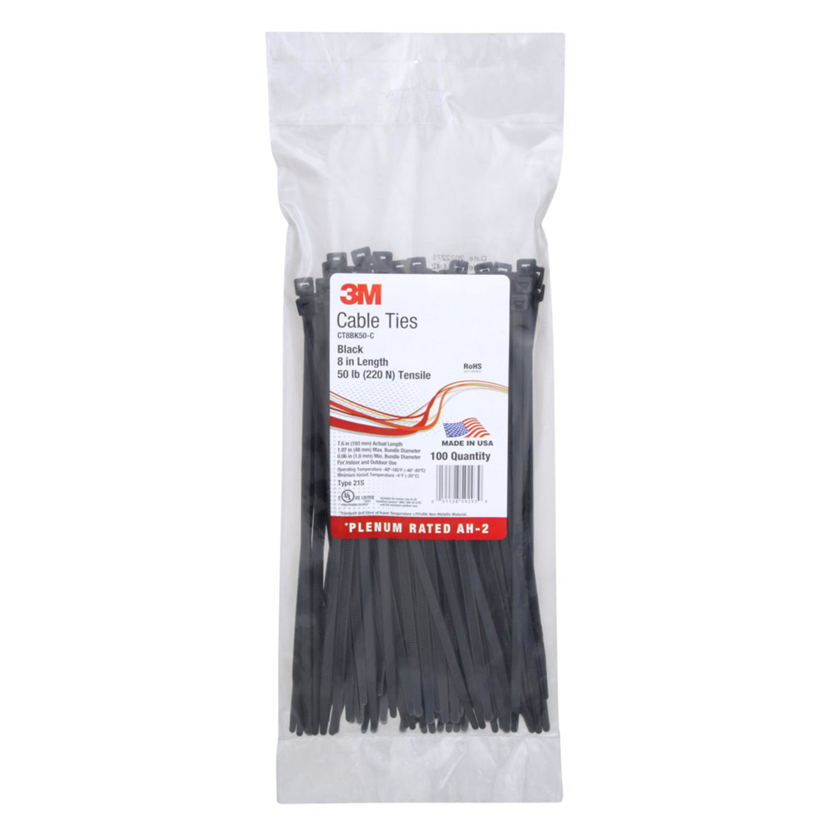 3M Cable Ties Locking 7.6 in Plenum Rated Black 100 per Pack Weather-resistant