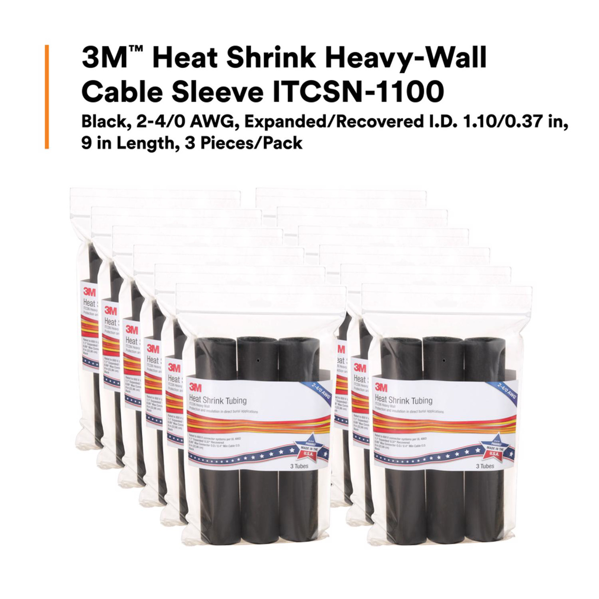 3M ITCSN Heavy-wall Heat Shrink Tubes 2 - 4/0 AWG 9 in Black