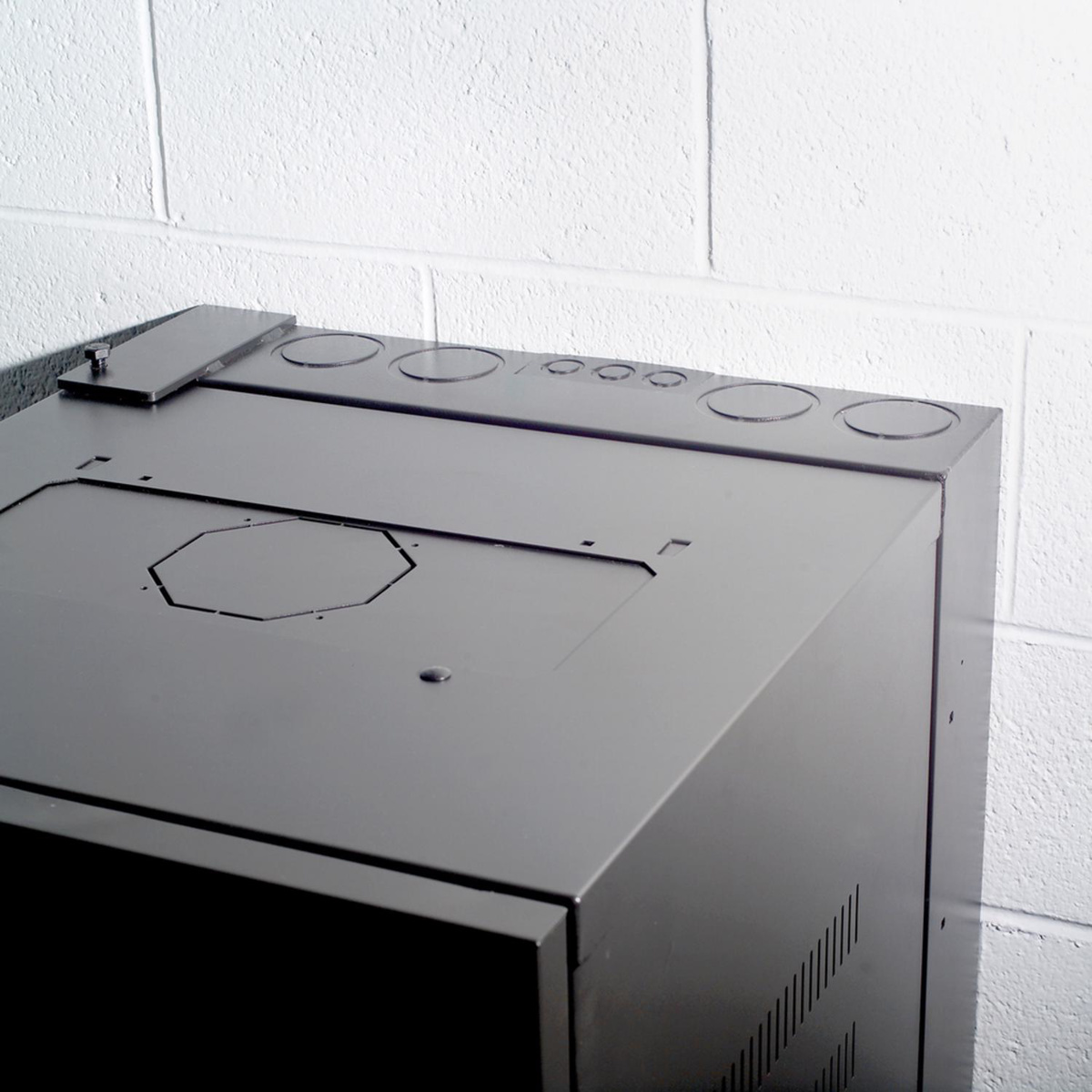 - Cable tie slots along both sides and inside top and bottom