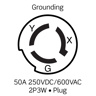 Leviton Black & White® Series Locking Plugs 50 A 600 VAC/250 VDC 2P3W Non-NEMA Non-Insulated Black & White® Dry Location