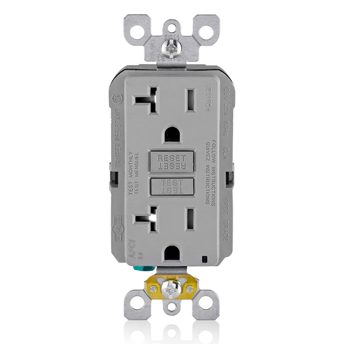 Leviton SmartlockPro® AFTR2 Series Duplex AFCIs 20 A Gray