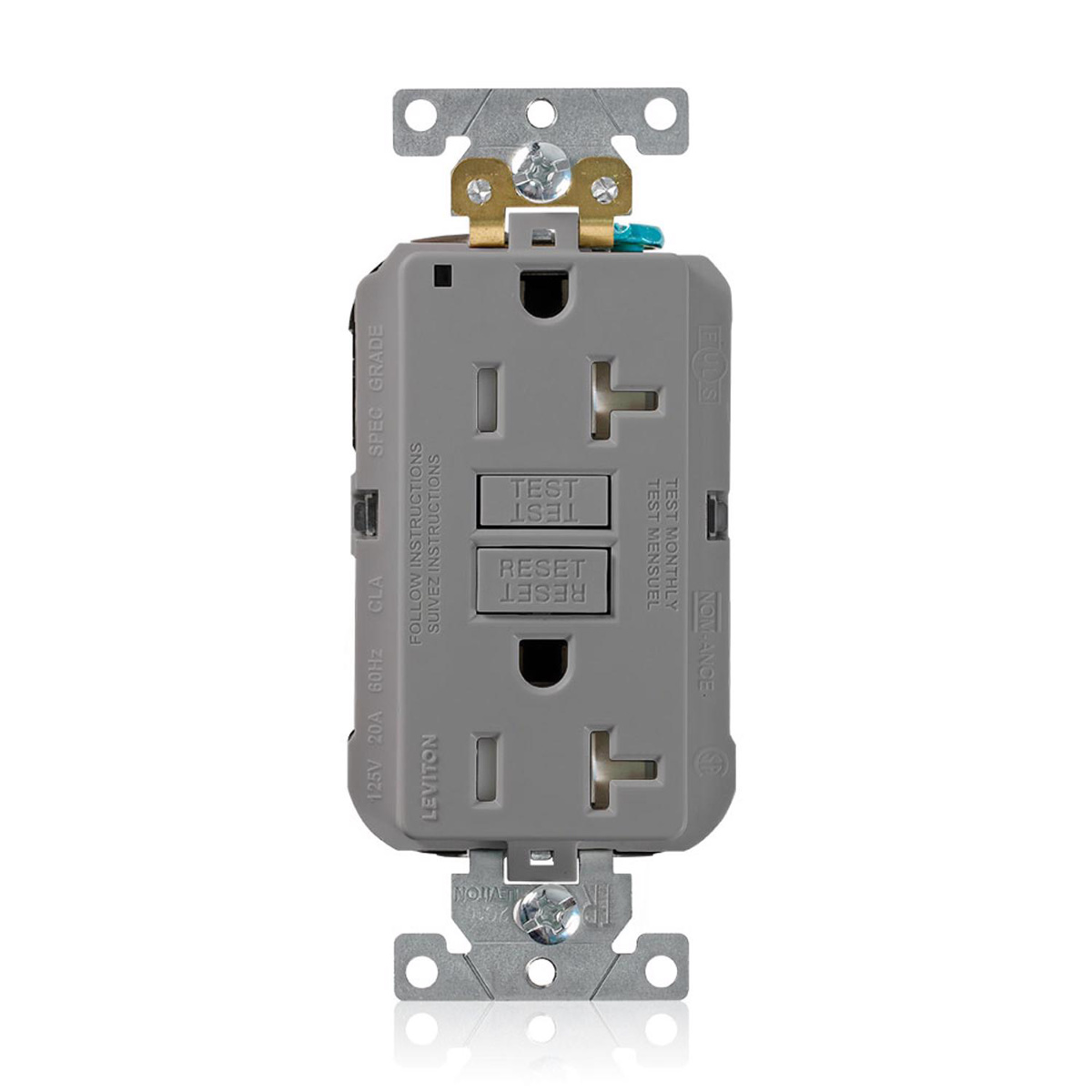 Leviton Lev-Lok® SmartlockPro® MGFT2 Series GFCIs 20 A Gray
