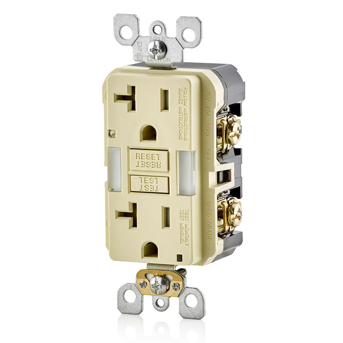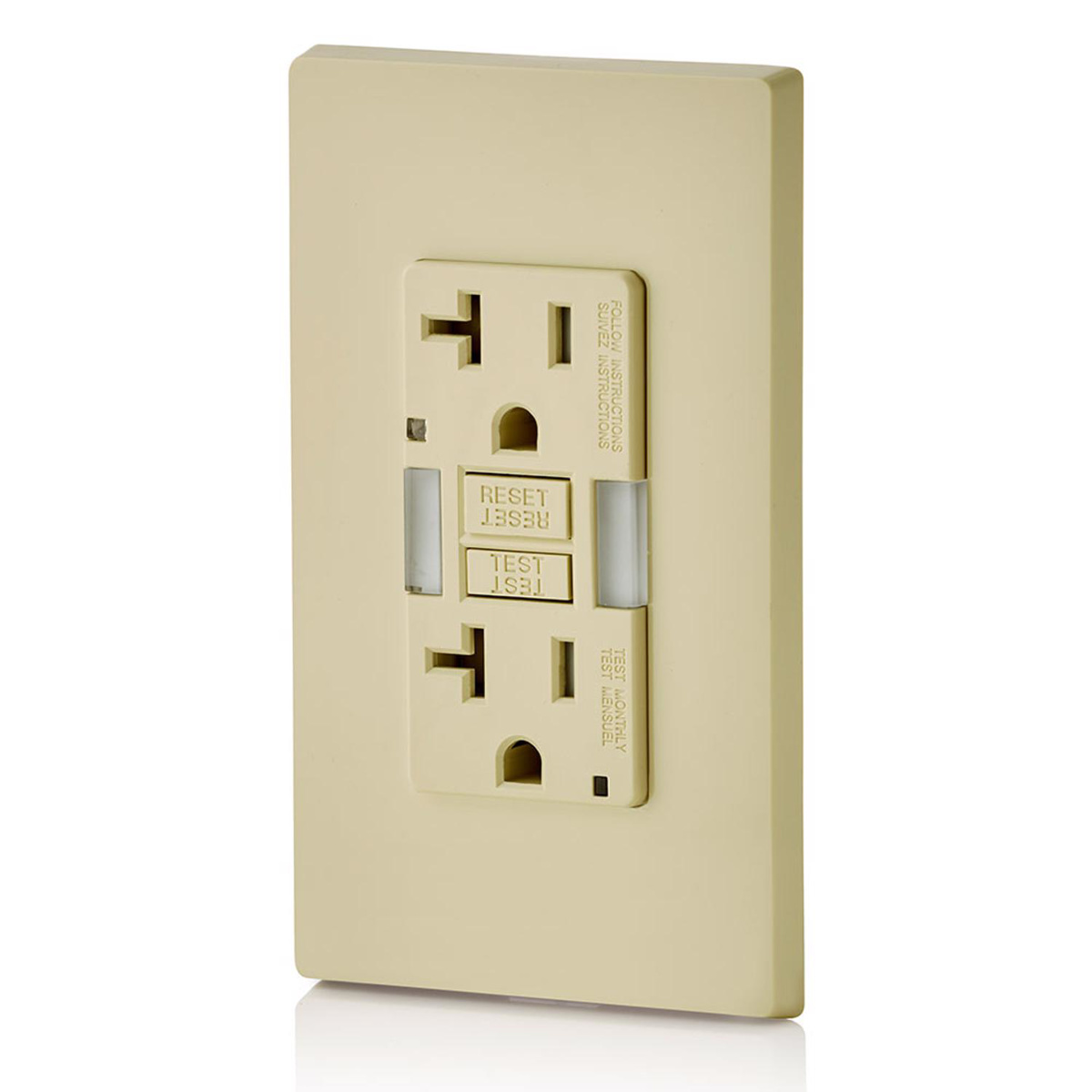 Leviton SmartlockPro® GFNL2 Series Self-test Hospital Grade GFCI / Guide Lights 20 A Ivory