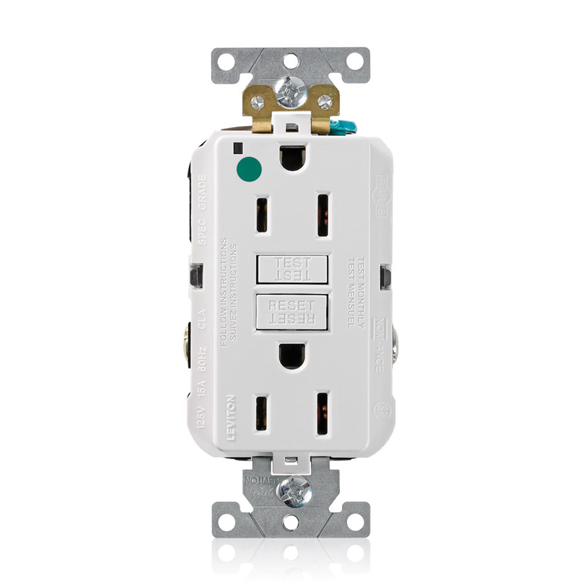 Leviton SmartlockPro® GFNT1 Series Hospital Grade Duplex GFCIs 15 A White