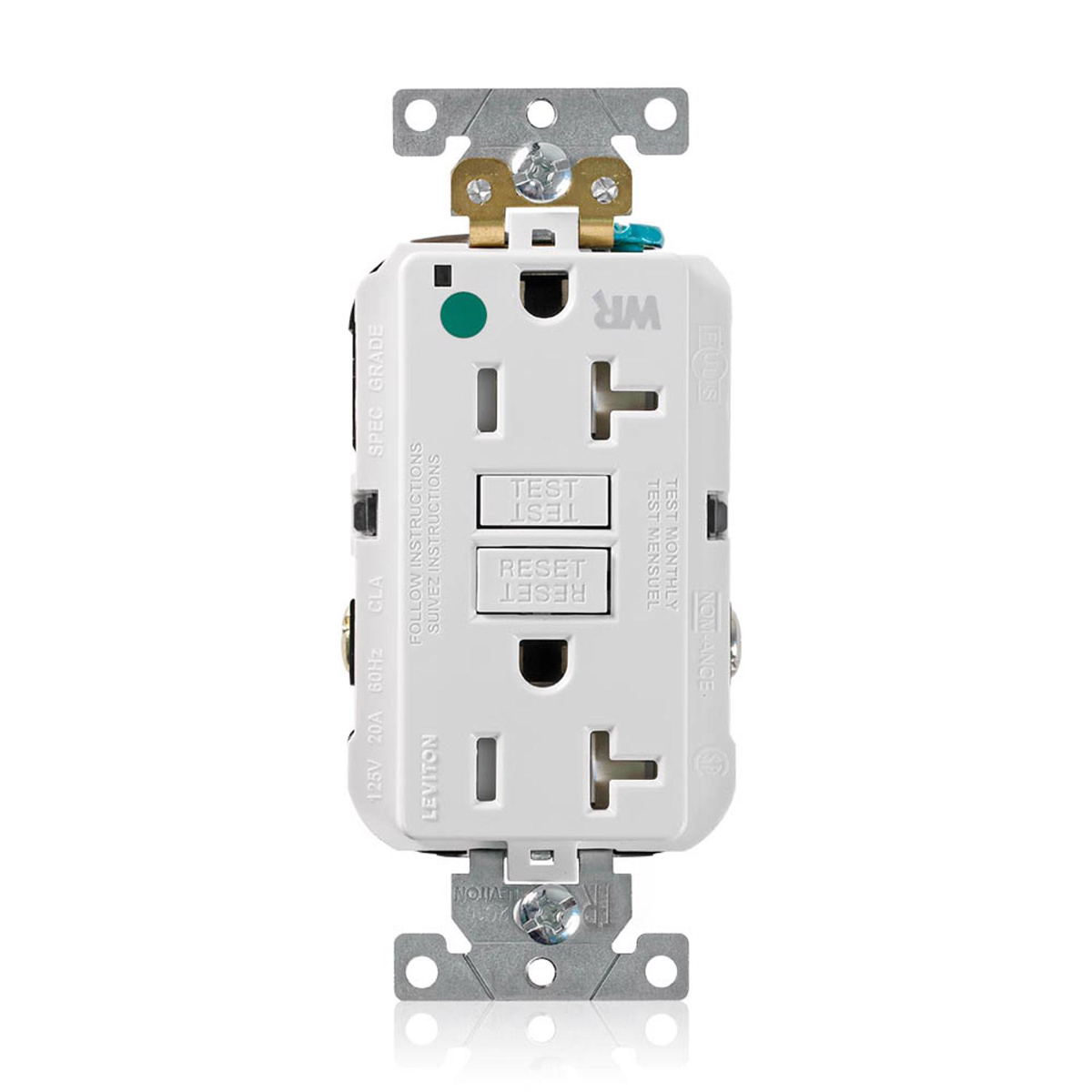 Leviton SmartlockPro® Slim GFWT2-F Series Self-test Hospital Grade GFCIs 20 A White