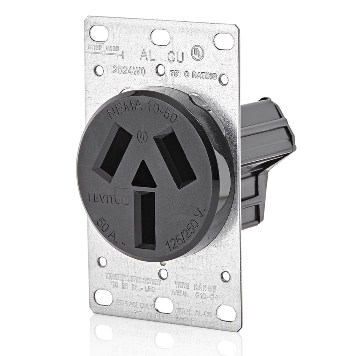 Leviton 5206 Series Single Receptacles 50 A 125/250 V 3P3W 10-50R Industrial Black