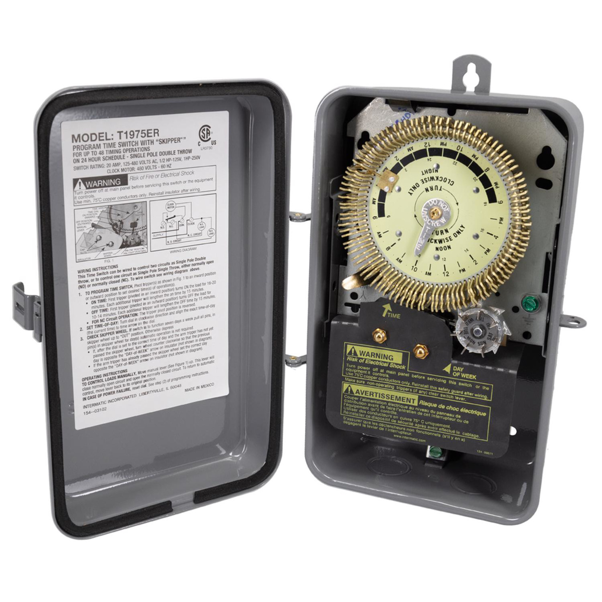 Intermatic T1970 Series Time Clock Electromechanical 24 hr with 15 min Interval 20 A Metallic