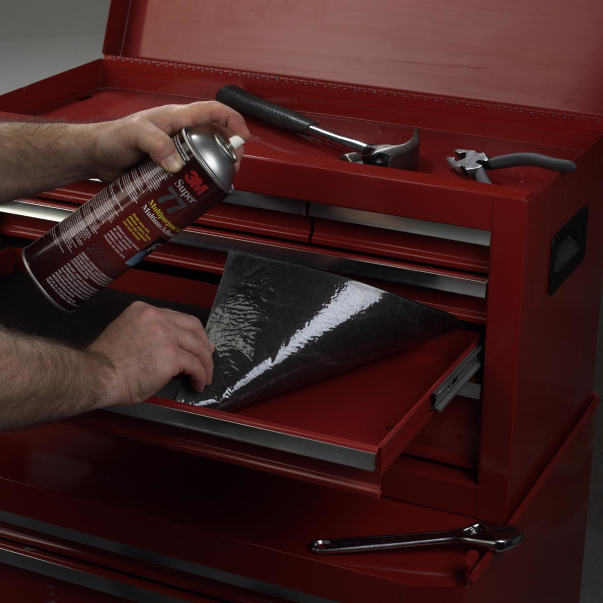 A multipurpose spray adhesive that can be used for a variety of projects to bond lightweight materials.