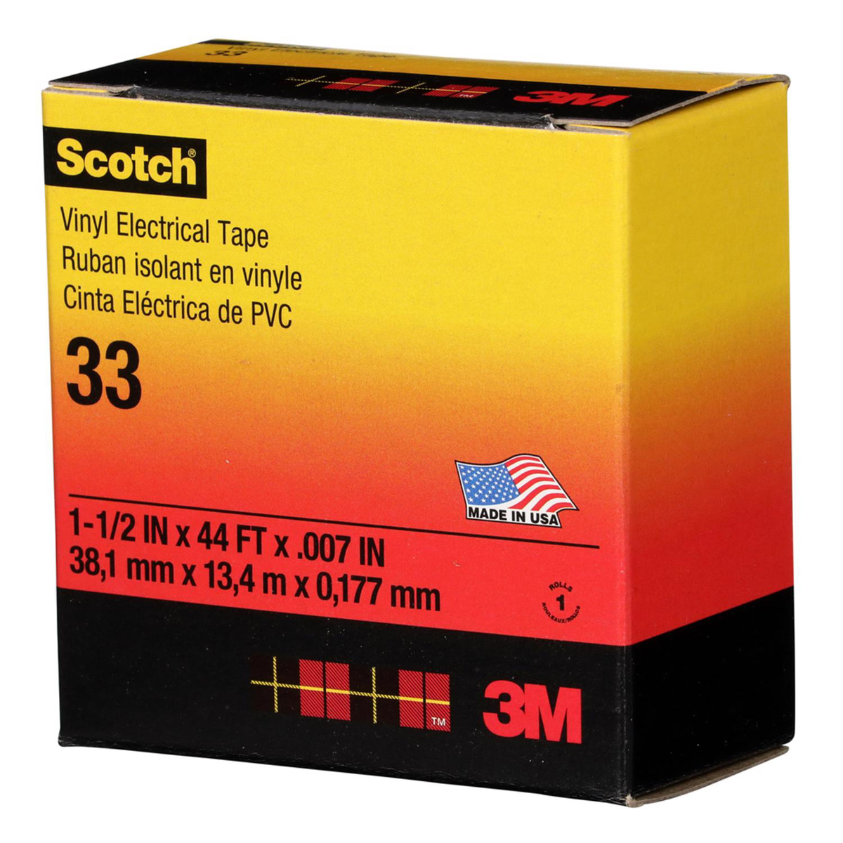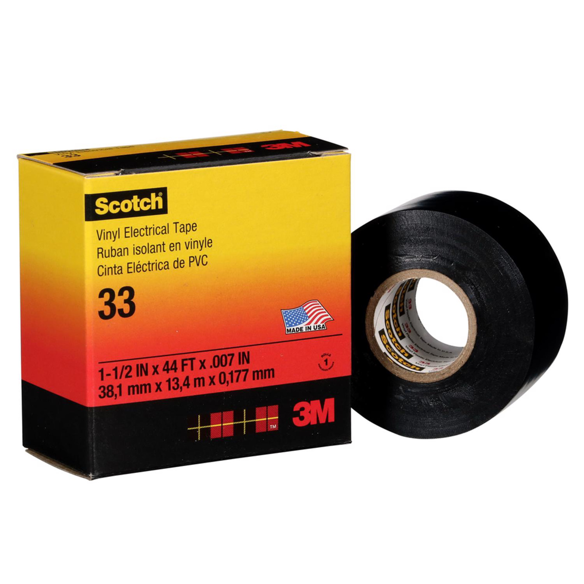 3M 33 Series Vinyl Electrical Tape 1-1/2 in x 44 ft 7 mil Black