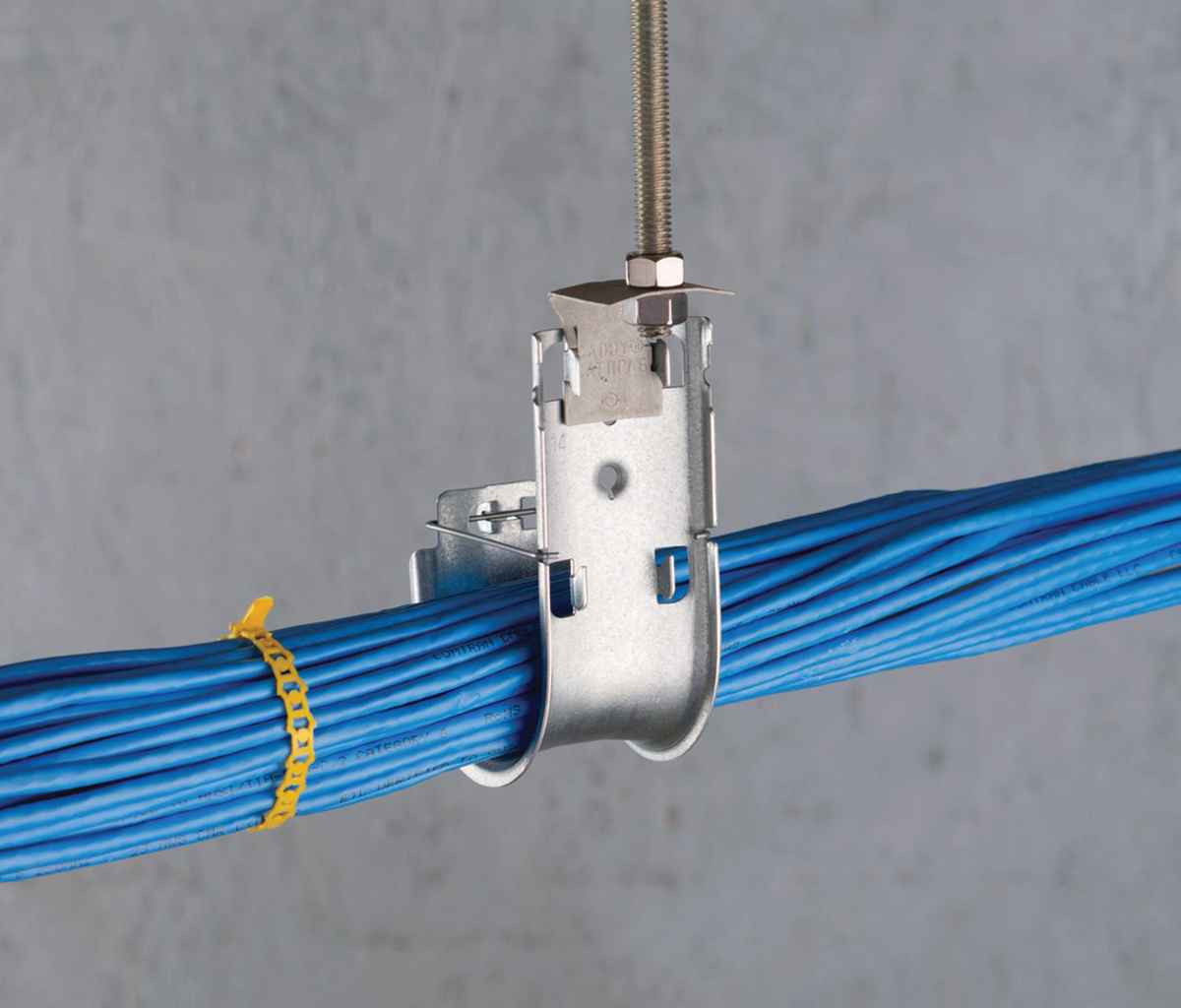 - J-Hooks feature bendable locking tabs that lock on to nVent CADDY Cat HP components to provide rigidity and stability