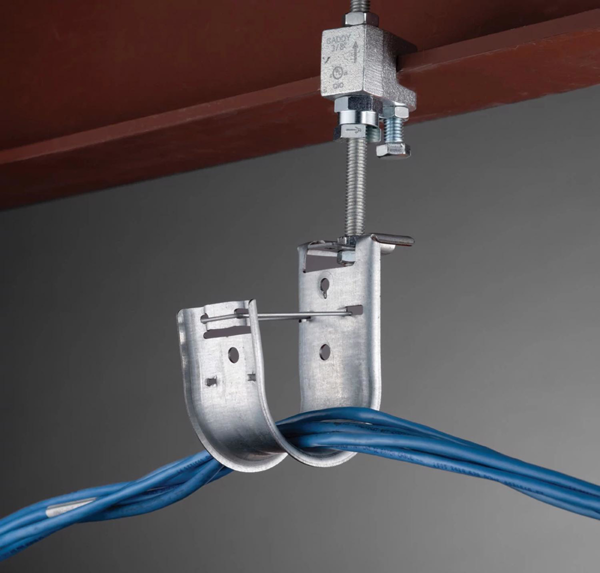 - Rounded edges on J-Hooks provide proper bend radius support for high performance data cables