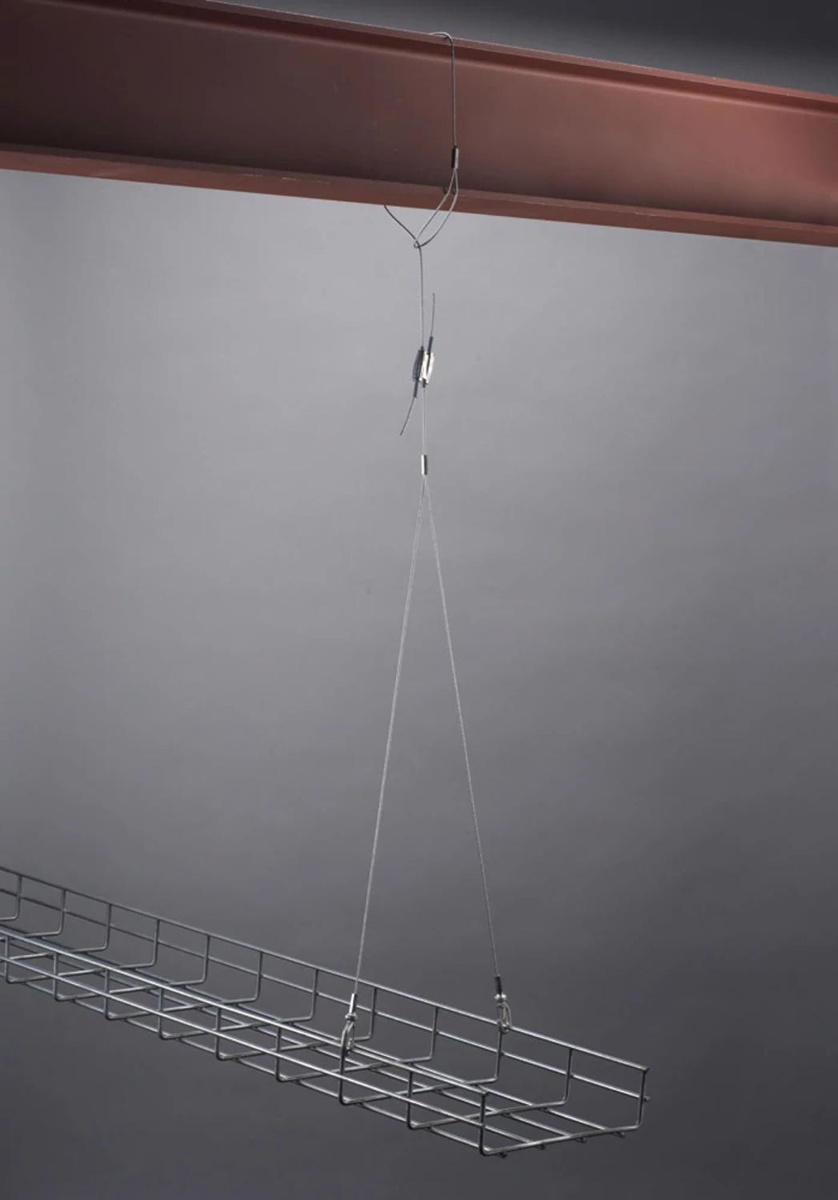 - Wire rope wraps around structure and through loop for quick installation