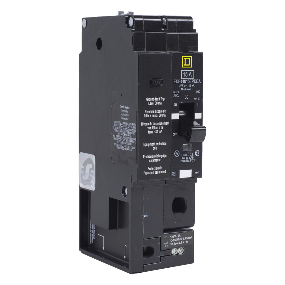 Square D EDB E-frame Bolt-on GFCI Alarm Switch Circuit Breakers 40 A 277 VAC 18 kAIC 1