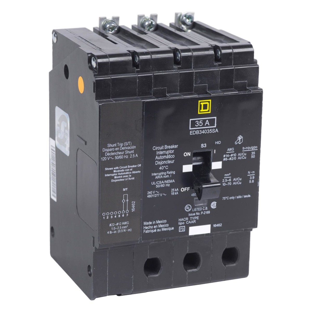 Square D EDB E-frame Bolt-on Shunt Trip Miniature Circuit Breakers 50 A 480Y/277 VAC 18 kAIC 3