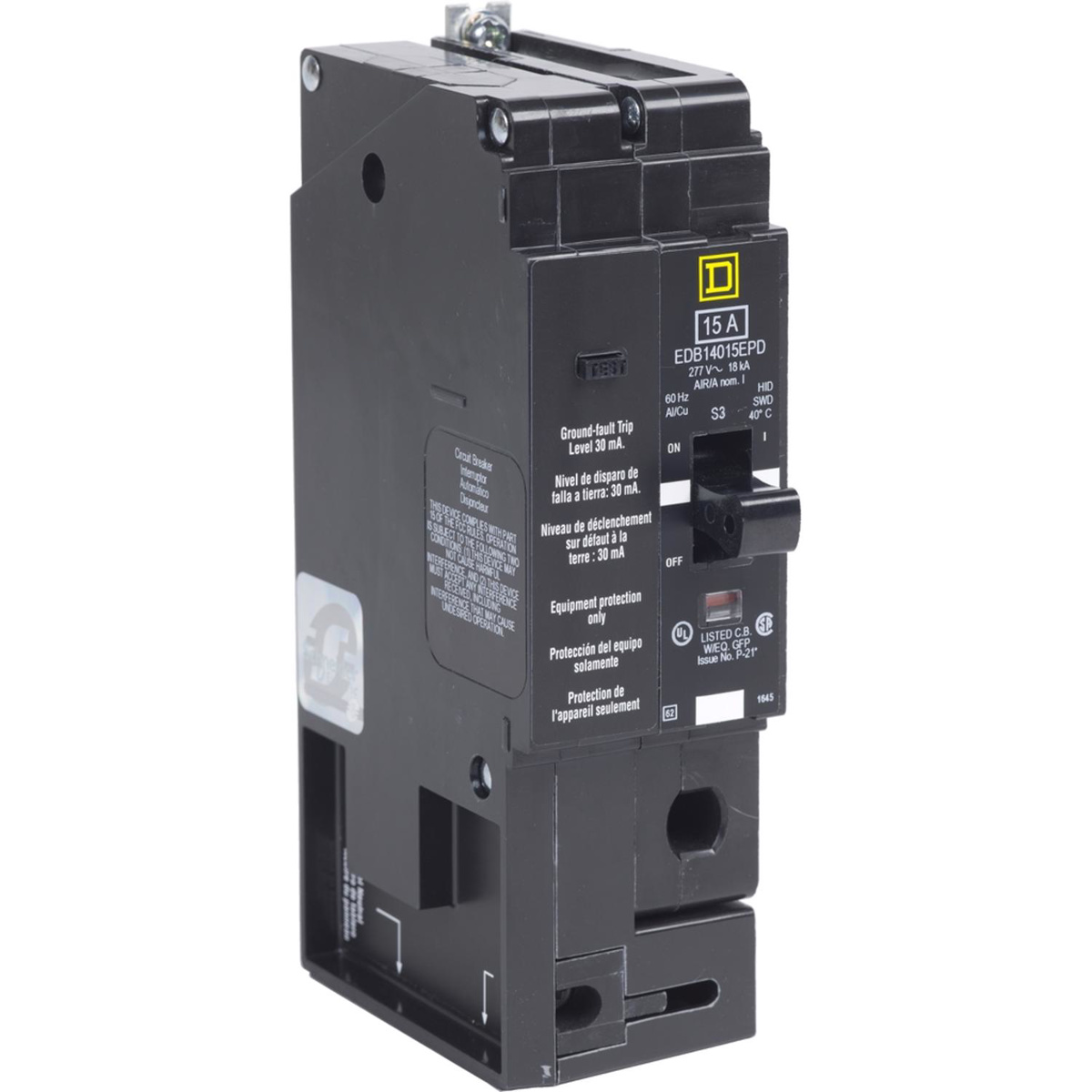 Square D EGB E-frame Bolt-on GFCI Circuit Breakers 20 A 277 VAC 65 kAIC 1