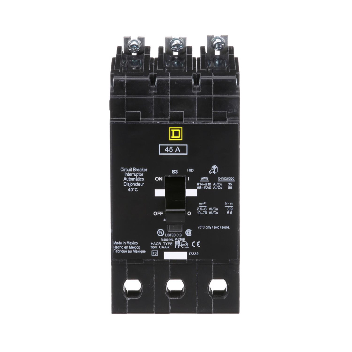 Square D EJB E-frame Bolt-on Miniature Circuit Breakers 45 A 480Y/277 VAC 65 kAIC 3