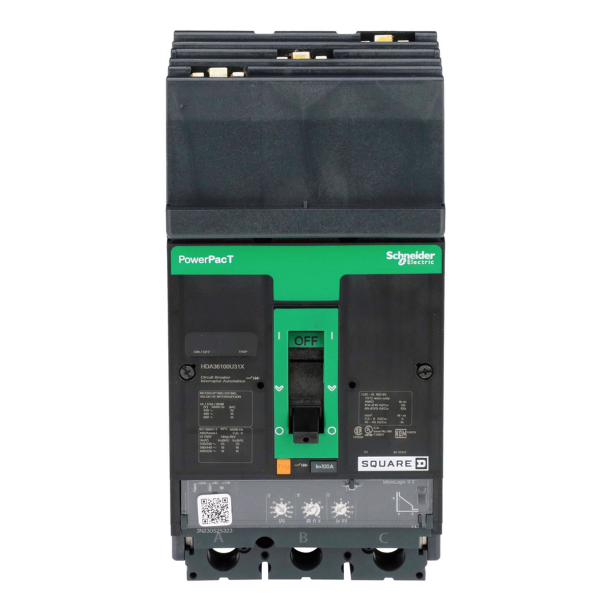 Square D PowerPacT™ HDA Molded Case Industrial Circuit Breakers 100 A 600 VAC 14 kAIC 3 Pole