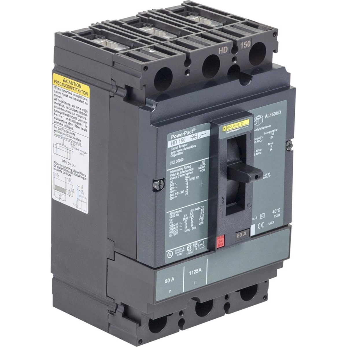 Square D PowerPacT™ HDL Cable-in / Cable-out Molded Case Industrial Circuit Breakers 150 A 600 VAC 14 kAIC 3 Pole