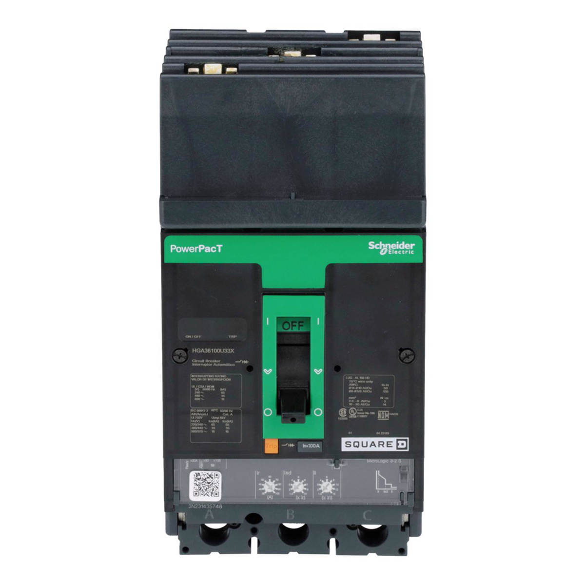 Square D PowerPacT™ HGA Molded Case Industrial Circuit Breakers 100 A 600 VAC 18 kAIC 3 Pole