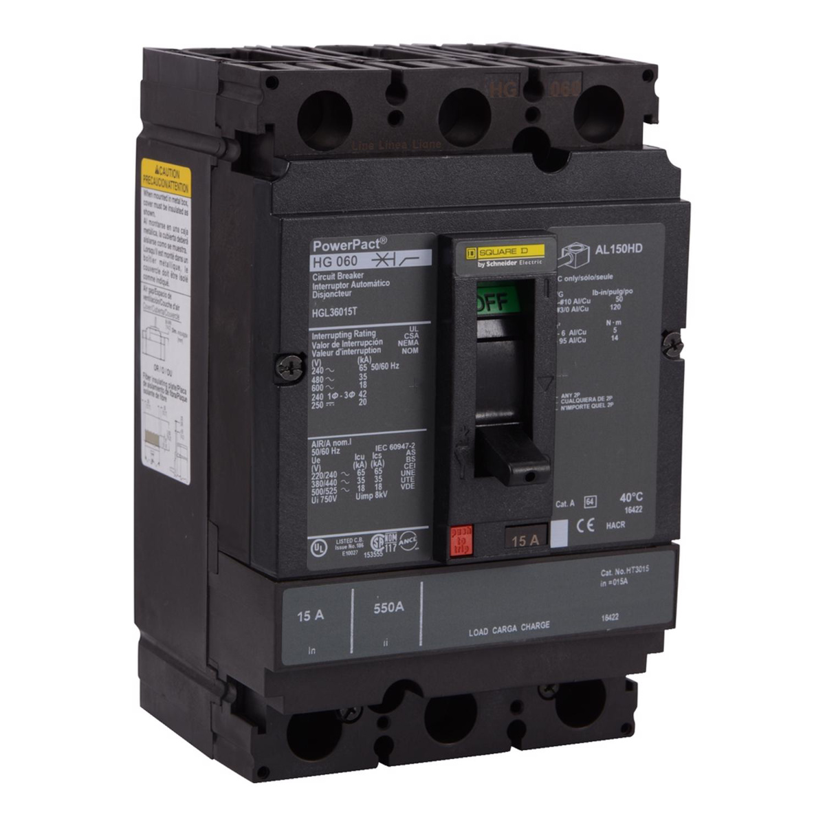 Square D PowerPacT™ HLL Cable-in / Cable-out Molded Case Industrial Circuit Breakers 80 A 600 VAC 50 kAIC 3 Pole