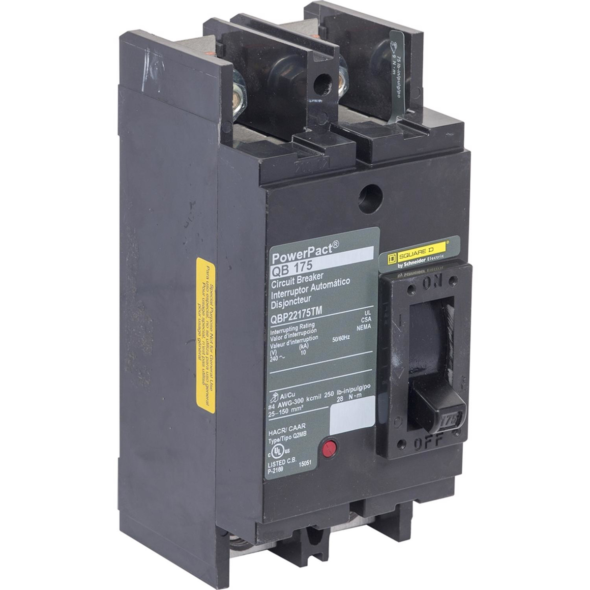 Square D PowerPacT™ QBP Molded Case Industrial Circuit Breakers 175 A 240 VAC 10 kAIC 2 Pole