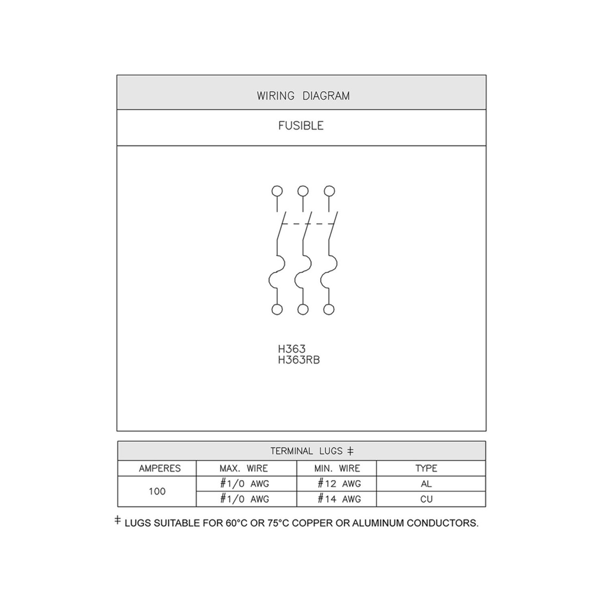 | Wire Size | (1) 14 - 1/0 AWG |