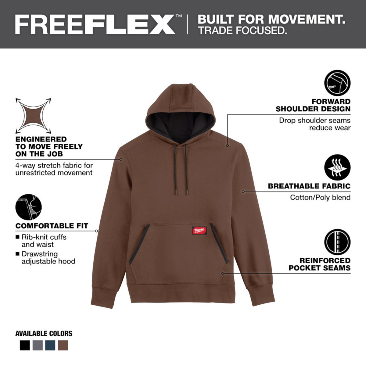 Milwaukee FREEFLEX™ Midweight Pullover Hoodies 3XL Brown Mens