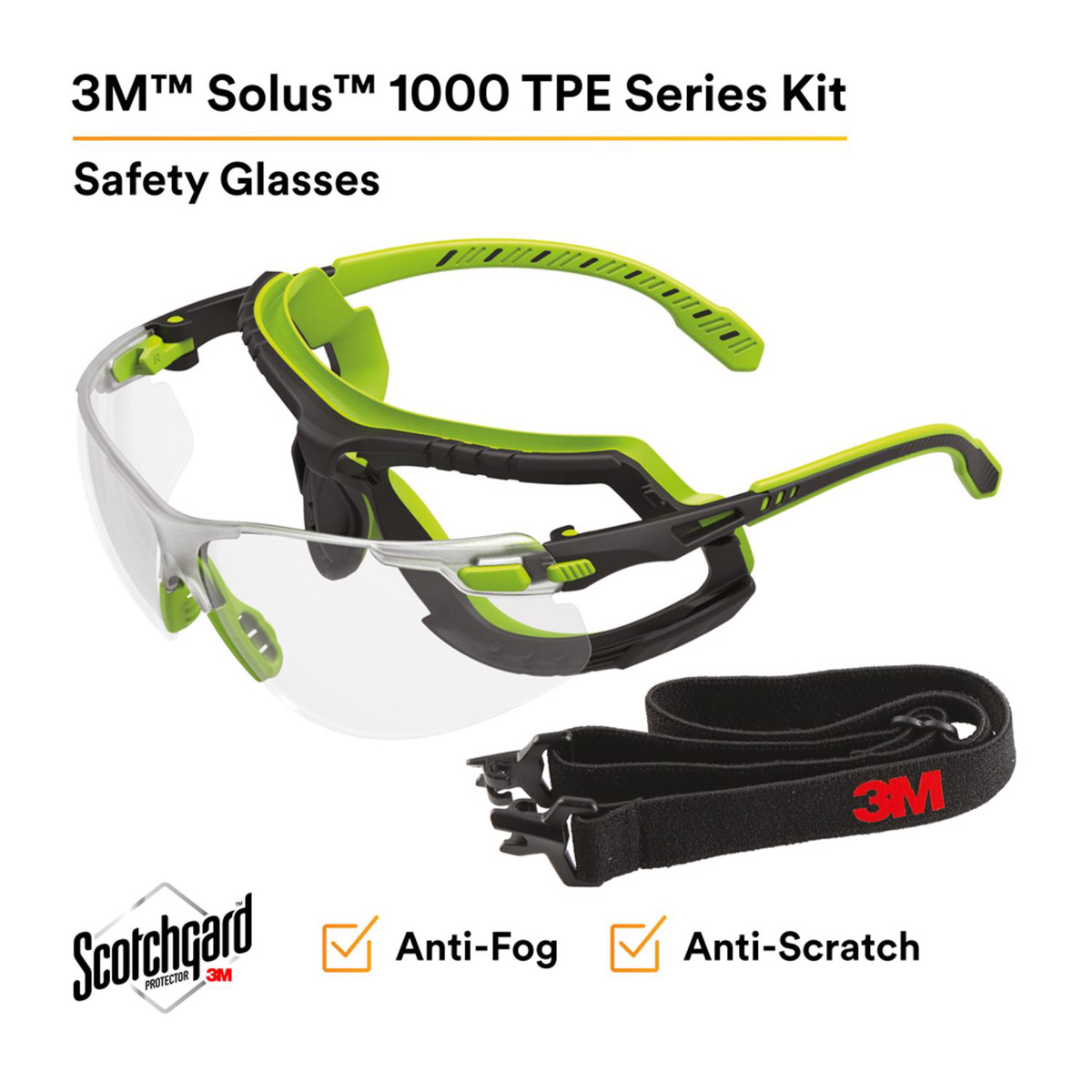 3M Safety Glasses Anti-fog, Anti-scratch Clear Black/Green