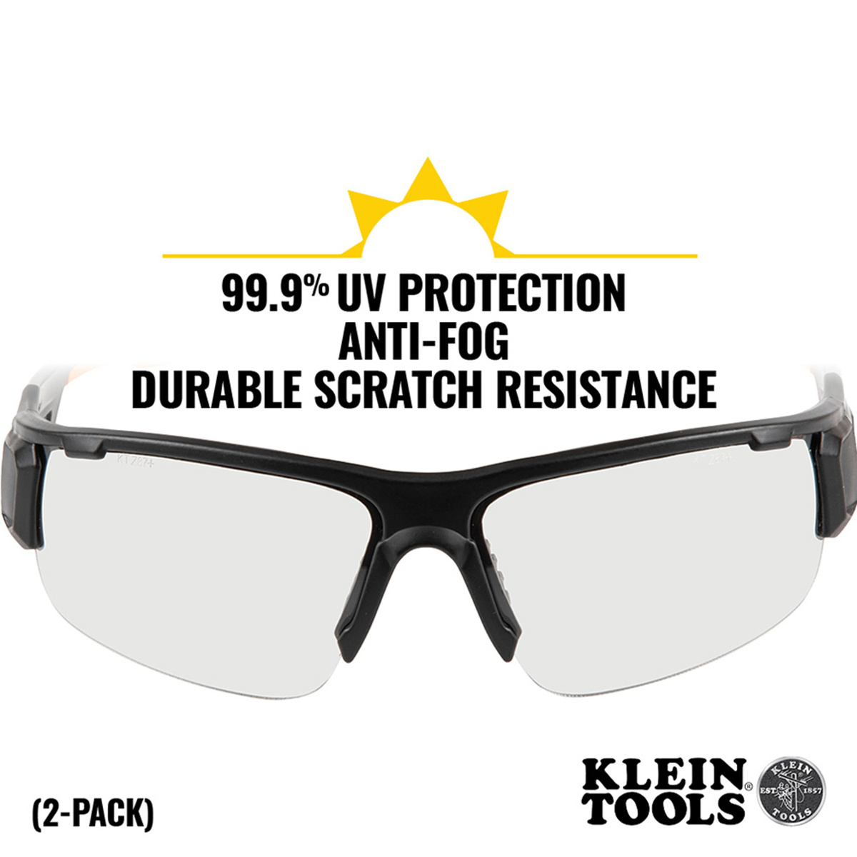 Klein Tools Professional Safety Glasses are high-quality protective eyewear that feature an anti-fog coating that won't wear off. Scratch resistant clear lenses with UV protection block 99.9% of harmful UV rays. Lightweight and flexible materials for long