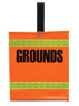 Hi-visibility orange GROUNDS flag with two reflective strips on front and back for easy visibility when working at night.