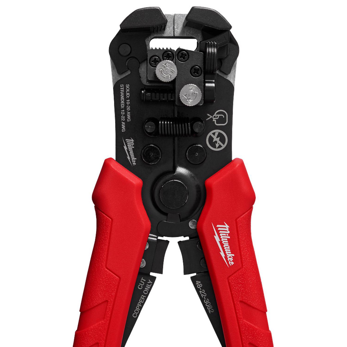 Milwaukee Cable Cutter & Strippers 20 - 10 AWG Solid, 22 - 12 AWG Stranded, Romex: 14/2 - 12/2 Red