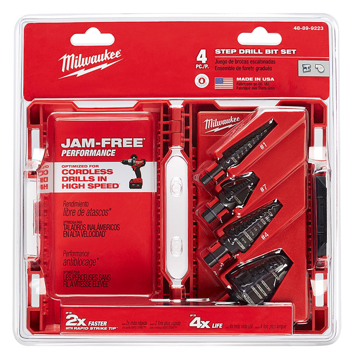 Milwaukee Jam-free Step Drill Bit Sets 4 Piece 1/8 - 1-3/8 in Dual Flute