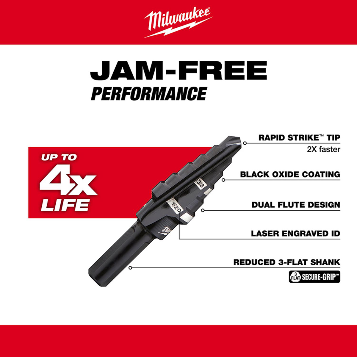 Milwaukee Step Drill Bits 3/8 - 1/2 in High Speed Steel (HSS) 2 Step 3 Flat Shank 3/8 in