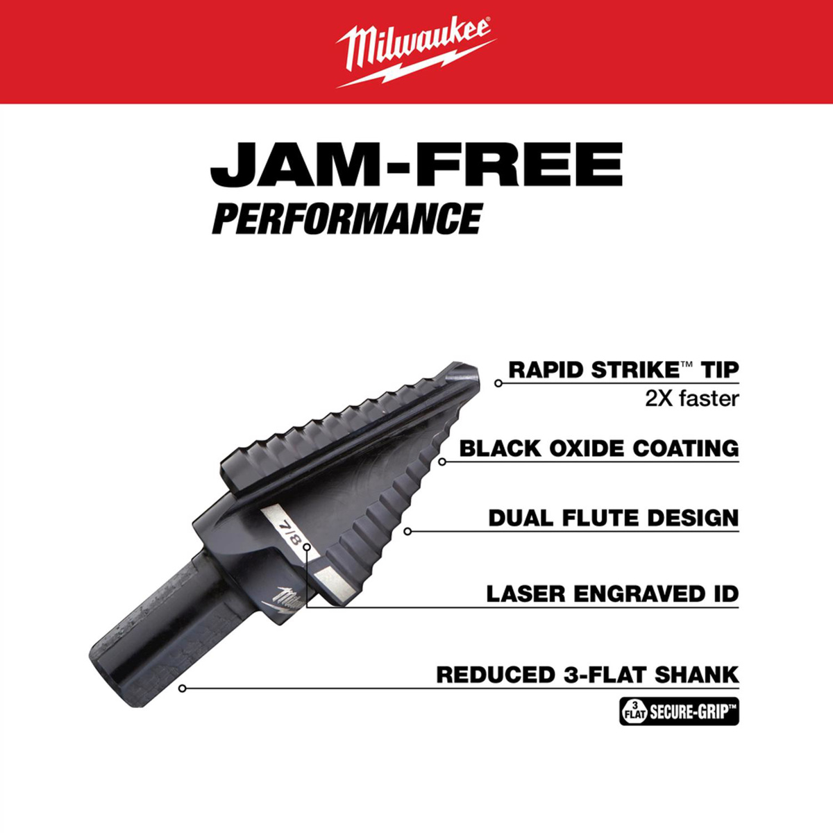 Milwaukee Step Drill Bits 7/8 in Black Oxide 1 Step 3 Flat Shank 3/8 in