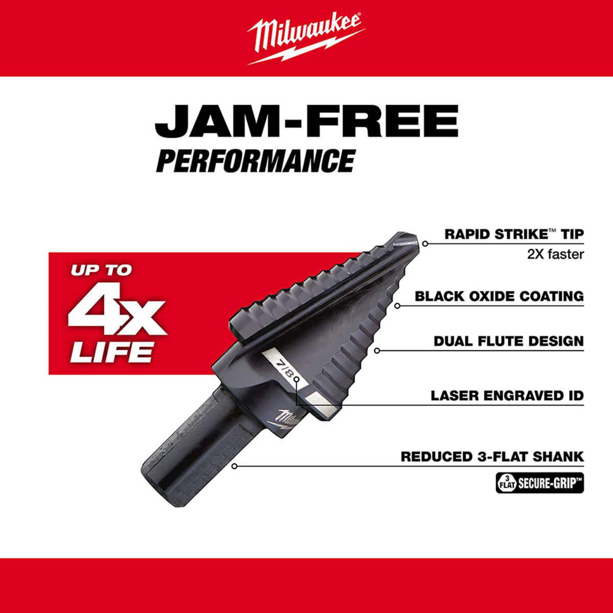 Milwaukee Step Drill Bits 7/8 in High Speed Steel (HSS) 1 Step 3 Flat Shank 3/8 in
