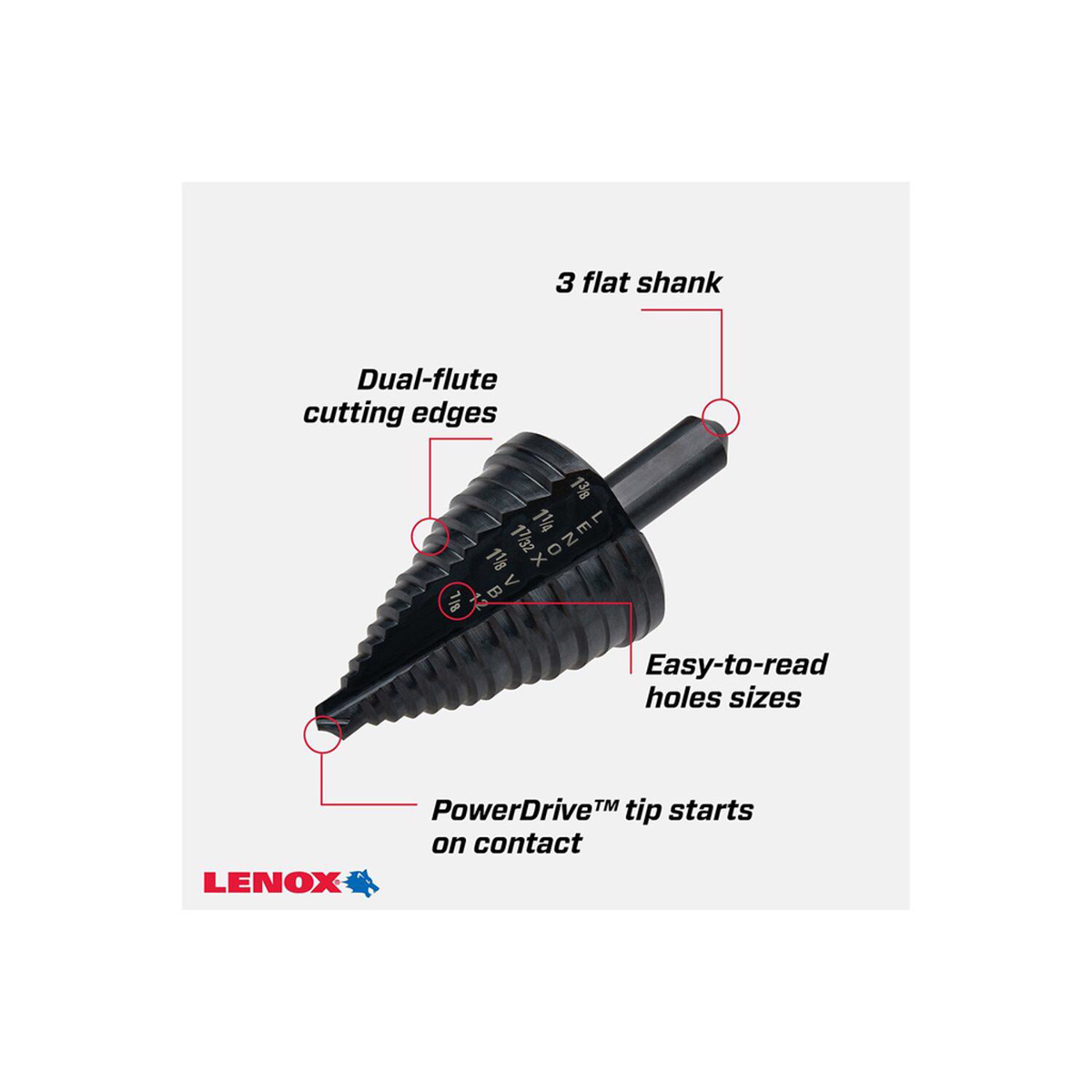Stanley Lenox Step Drill Bits 7/8 - 1-3/8 in High Speed Steel (HSS) 3 Flat Shank