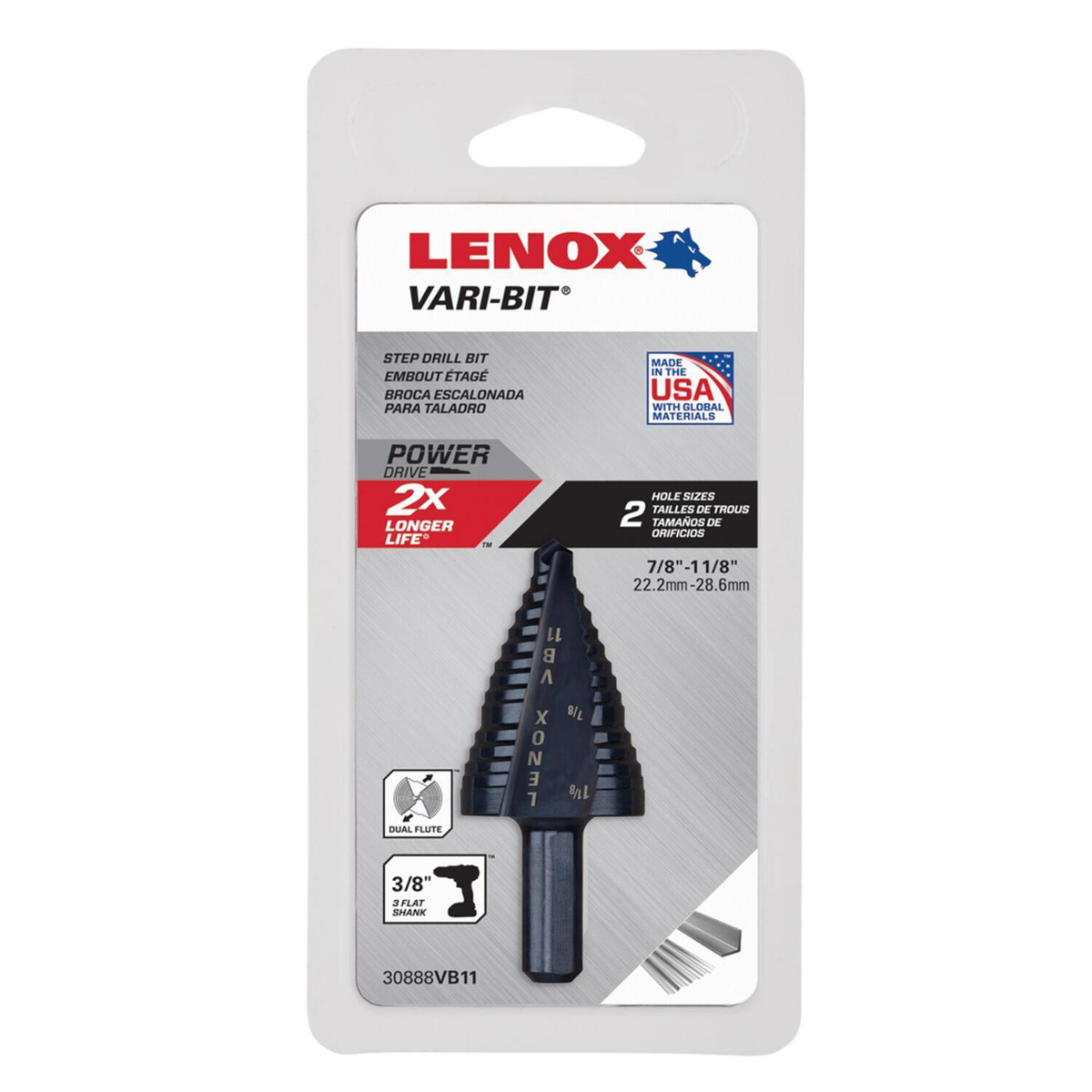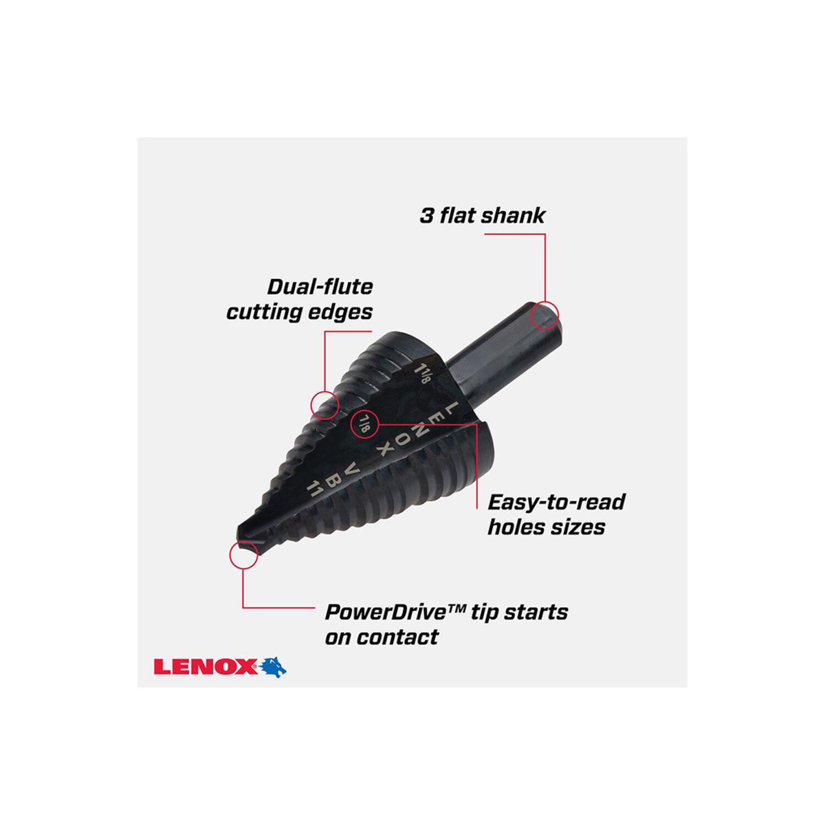 Stanley Lenox Step Drill Bits 7/8, 1-1/8 in High Speed Steel (HSS) 3 Flat Shank