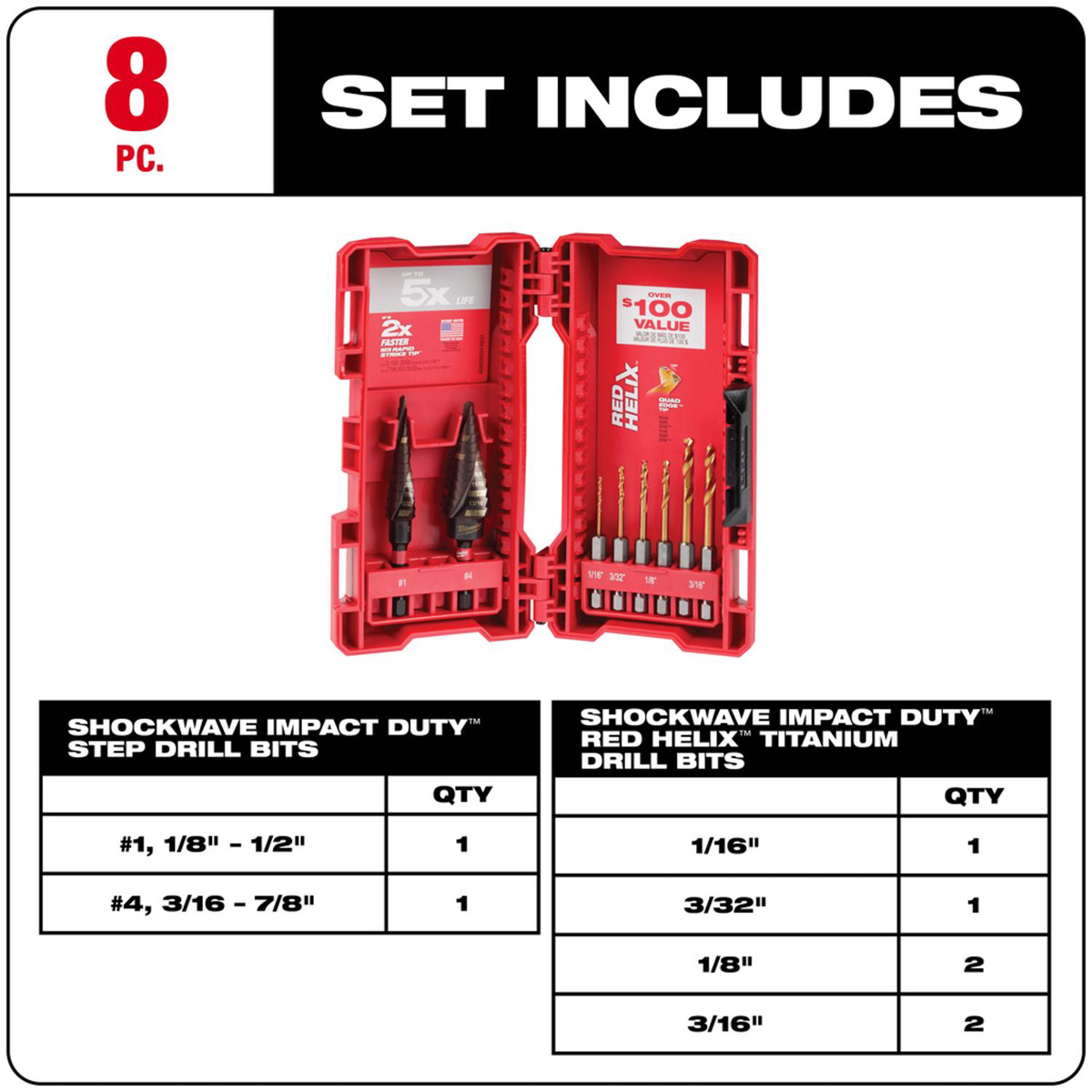 | Bit Size | 1/16 - 3/16 (Twist), 1/8 - 7/8 in (Step) |