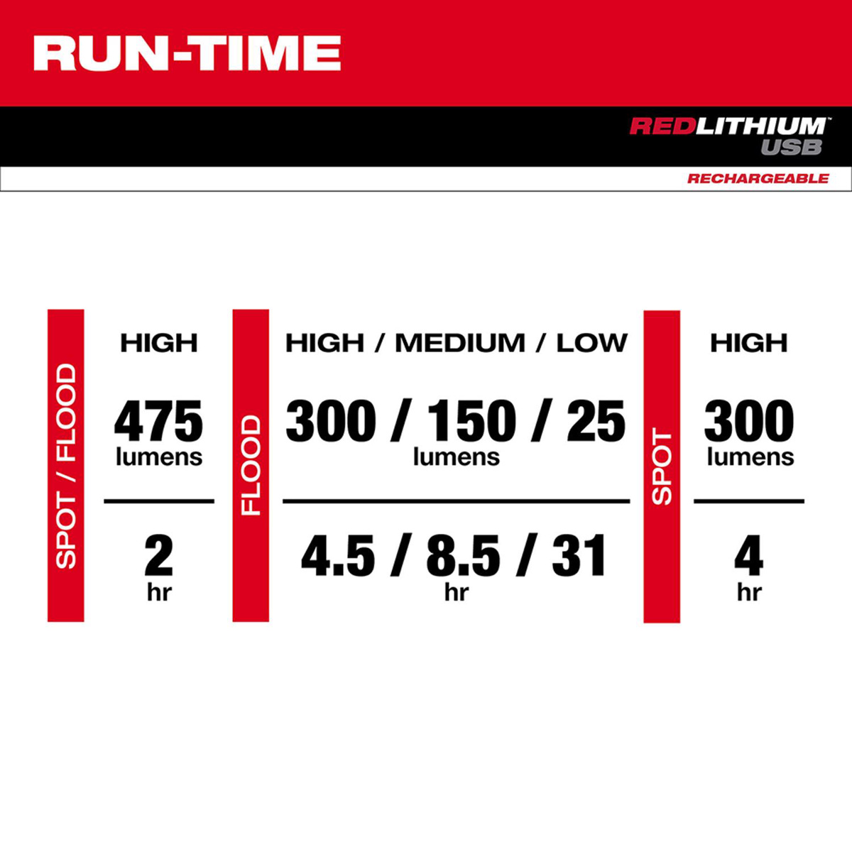 | Run Time | 2/4.5/8.5/31 hrs |