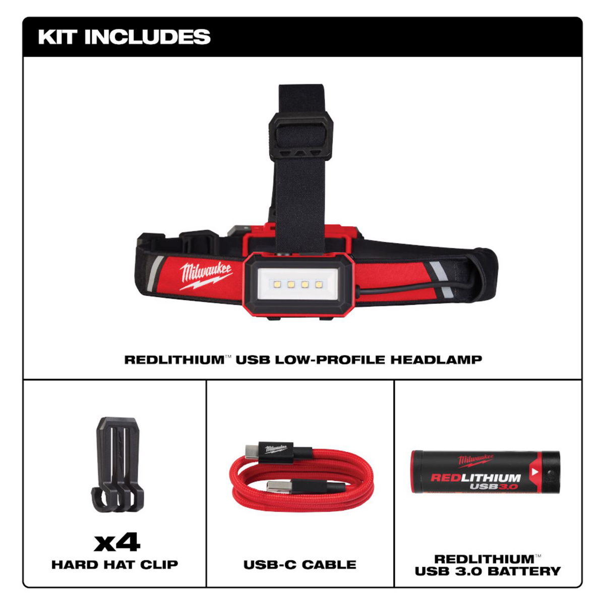 Milwaukee REDLITHIUM™ USB Rechargeable Hard Hat Headlamps 600 lm Not Hazardous Rated USB Rechargeable Battery LED