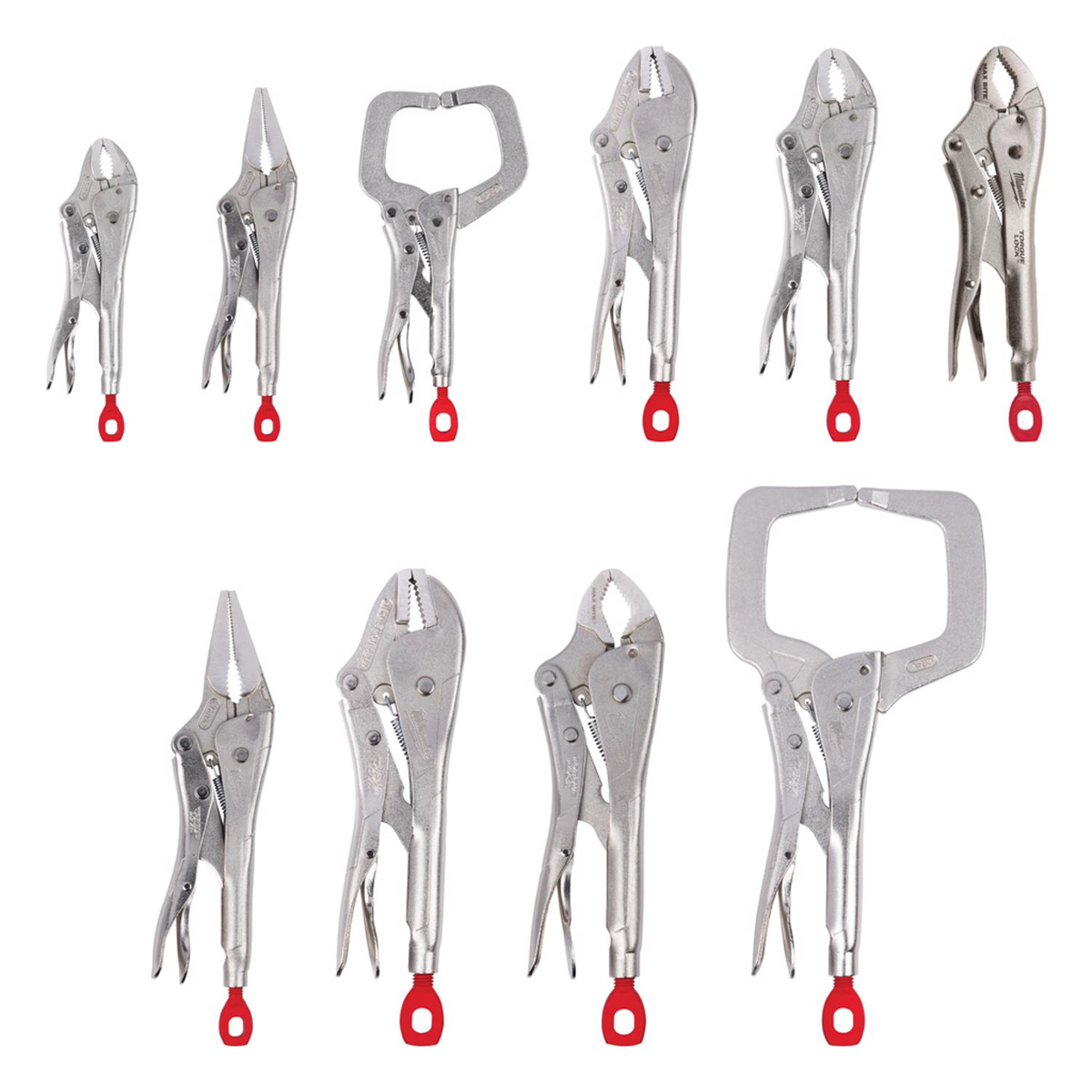 Milwaukee Locking Plier Sets 10 Piece Curved, Long Nose, Straight