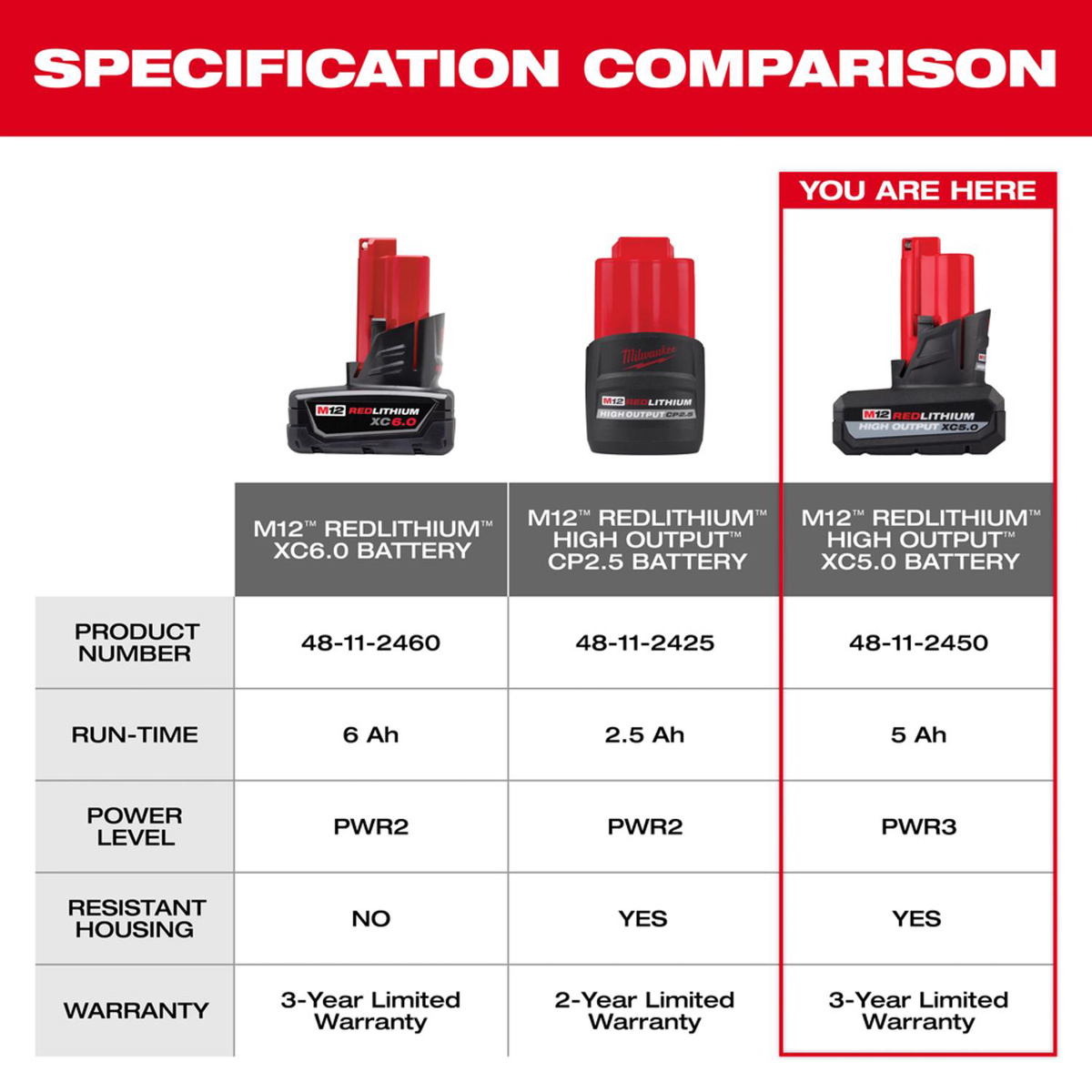 Milwaukee M12™ REDLITHIUM™ HIGH OUTPUT™ XC Batteries M12™ Lithium-ion (Li-ion) Batteries 5 Ah