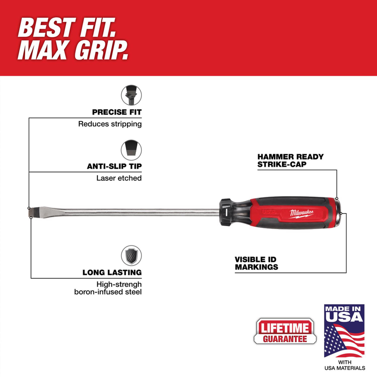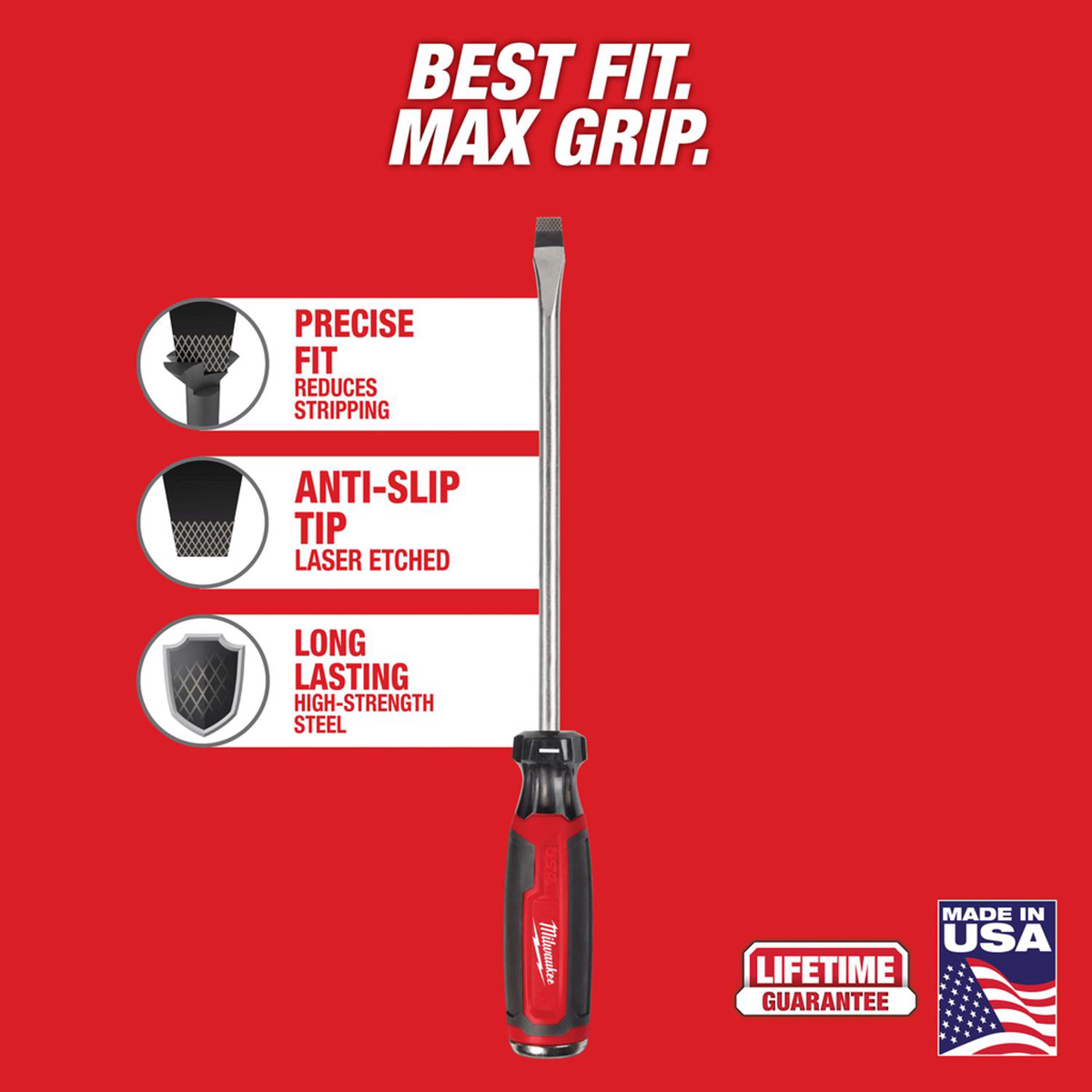 Milwaukee Slotted Tip Demolition Screwdrivers 3/8 in 8 in Not Magnetic Manual