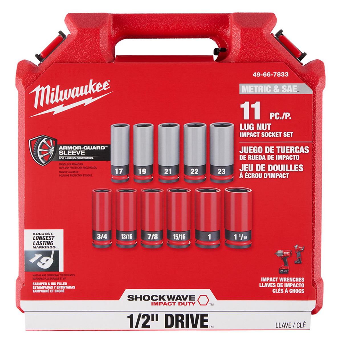 Milwaukee Metric / SAE Socket Sets Standard 1/2 in 11 Piece 6 Point