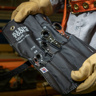 Offset reversible ratchet box wrenches in heavy plastic roll-up pouch.
