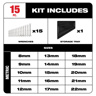 Milwaukee Combination Wrench Sets 15 Piece (1) 8 mm, (1) 9 mm, (1) 10 mm, (1) 11 mm, (1) 12 mm, (1) 13 mm, (1) 14 mm, (1) 15 mm, (1) 16 mm, (1) 17 mm,