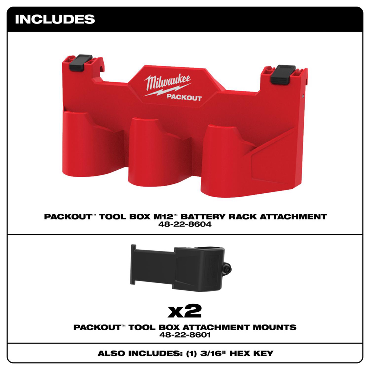 Milwaukee PACKOUT™ Tool Box M12™ Battery Rack Attachments VO PC ABS Red