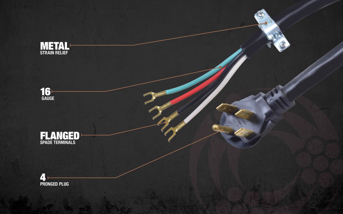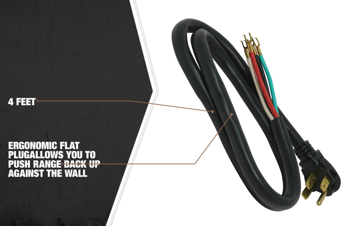 Southwire SRDT Round Range Cord 4 Conductor 50 A 125/250 V 8/2 6/2 4 ft Black Right Angle 14-50P
